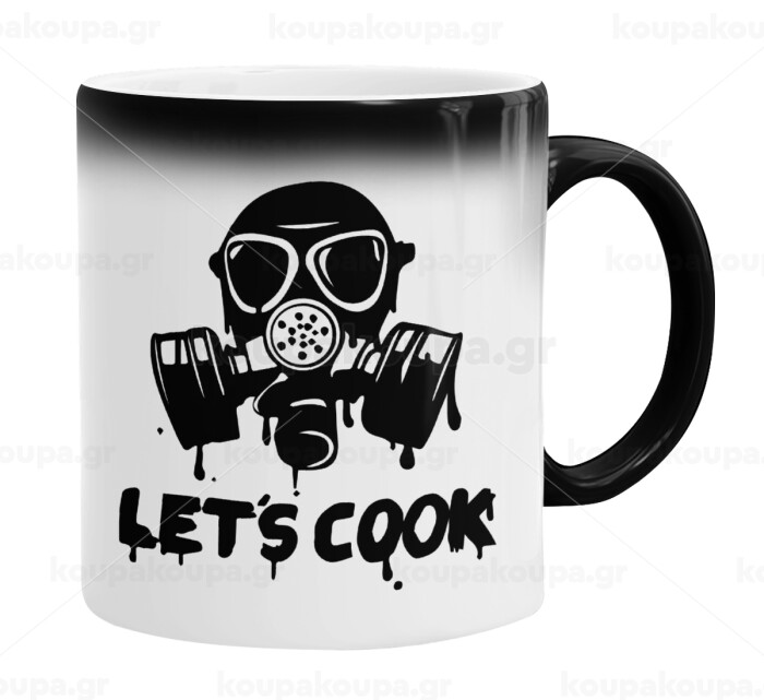 Let's cook mask, Color changing magic Mug, ceramic, 330ml when adding hot liquid inside, the black colour desappears (1 pcs)