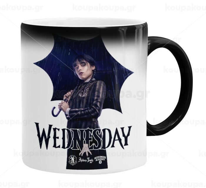 Wednesday rain, Color changing magic Mug, ceramic, 330ml when adding hot liquid inside, the black colour desappears (1 pcs)