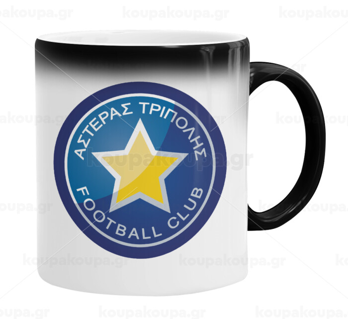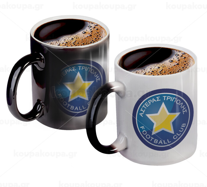Asteras Tripolis, Color changing magic Mug, ceramic, 330ml when adding hot liquid inside, the black colour desappears (1 pcs)