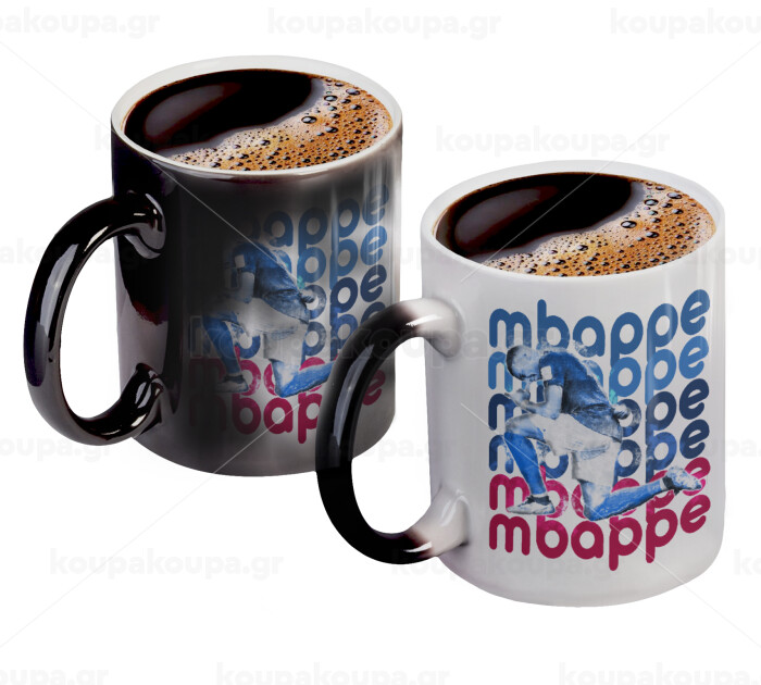 Kylian Mbappé, Color changing magic Mug, ceramic, 330ml when adding hot liquid inside, the black colour desappears (1 pcs)