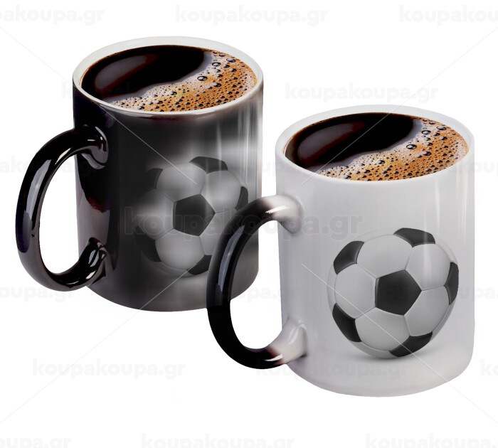 Soccer ball, Color changing magic Mug, ceramic, 330ml when adding hot liquid inside, the black colour desappears (1 pcs)