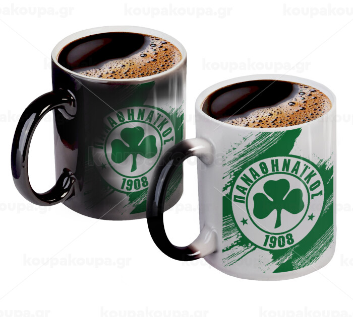 Π.Α.Ο., Color changing magic Mug, ceramic, 330ml when adding hot liquid inside, the black colour desappears (1 pcs)