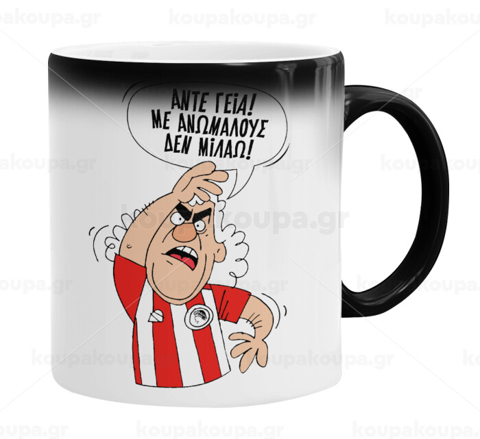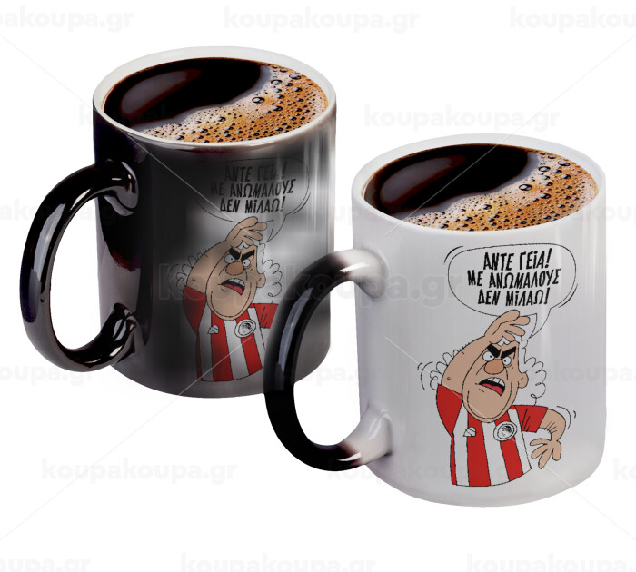Τάκης, Άντε γεια, με ανώμαλους δεν μιλάω!, Color changing magic Mug, ceramic, 330ml when adding hot liquid inside, the black colour desappears (1 pcs)