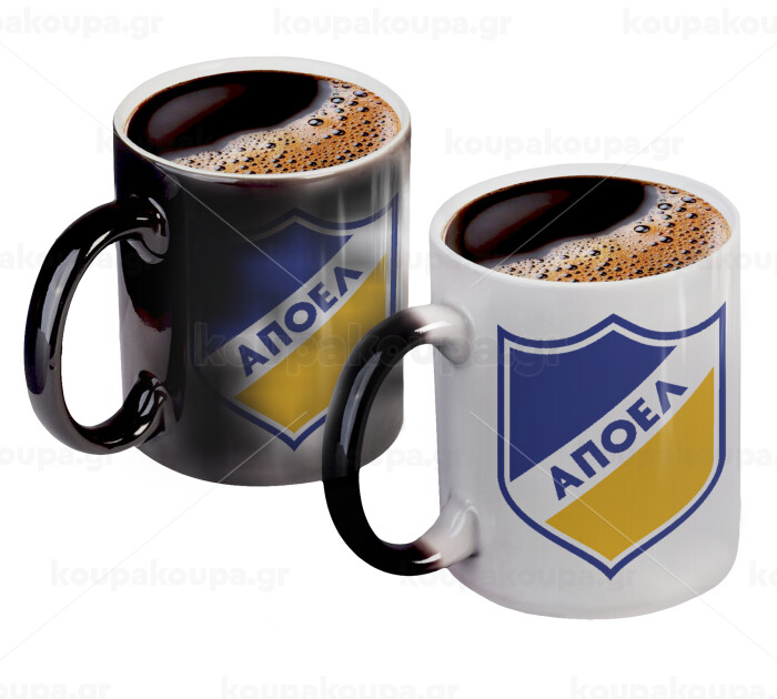 FC ΑΠΟΕΛ Λευκωσίας, Color changing magic Mug, ceramic, 330ml when adding hot liquid inside, the black colour desappears (1 pcs)