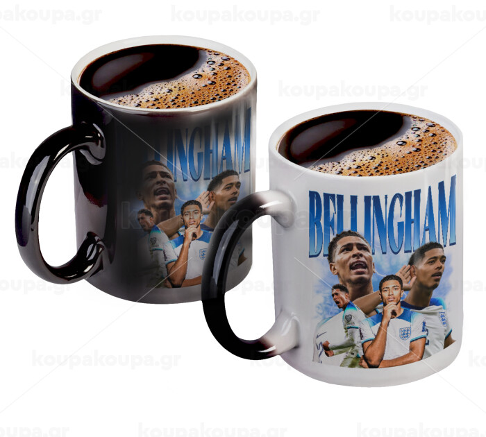 Jude Bellingham, Color changing magic Mug, ceramic, 330ml when adding hot liquid inside, the black colour desappears (1 pcs)