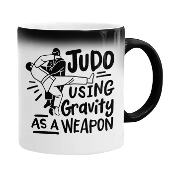 Judo using gravity as a weapon, Color changing magic Mug, ceramic, 330ml when adding hot liquid inside, the black colour desappears (1 pcs)