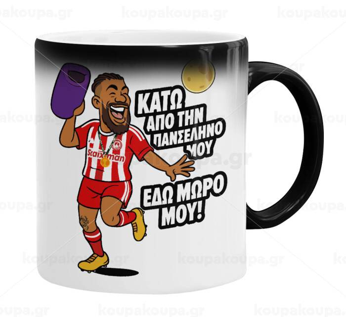 Ροντινέι, "ΚΑΤΩ ΑΠΟ ΤΗΝ ΠΑΝΣΕΛΗΝΟ ΜΟΥ!", Color changing magic Mug, ceramic, 330ml when adding hot liquid inside, the black colour desappears (1 pcs)