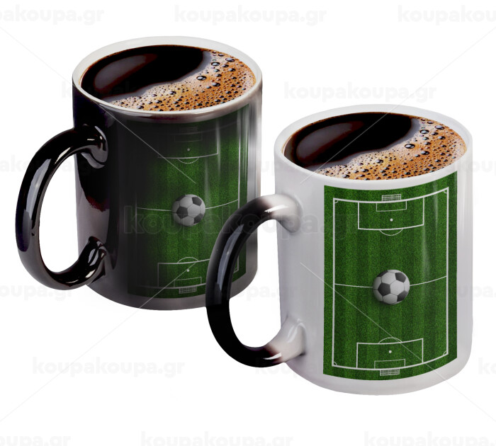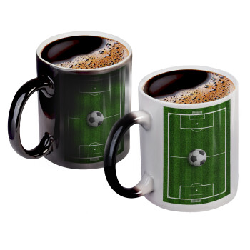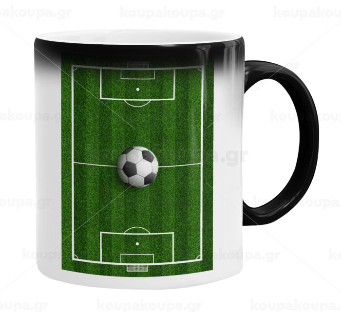 Soccer field, Γήπεδο ποδοσφαίρου, Color changing magic Mug, ceramic, 330ml when adding hot liquid inside, the black colour desappears (1 pcs)