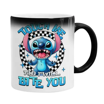 Stitch Touch Me And I Will Bite You, Color changing magic Mug, ceramic, 330ml when adding hot liquid inside, the black colour desappears (1 pcs)