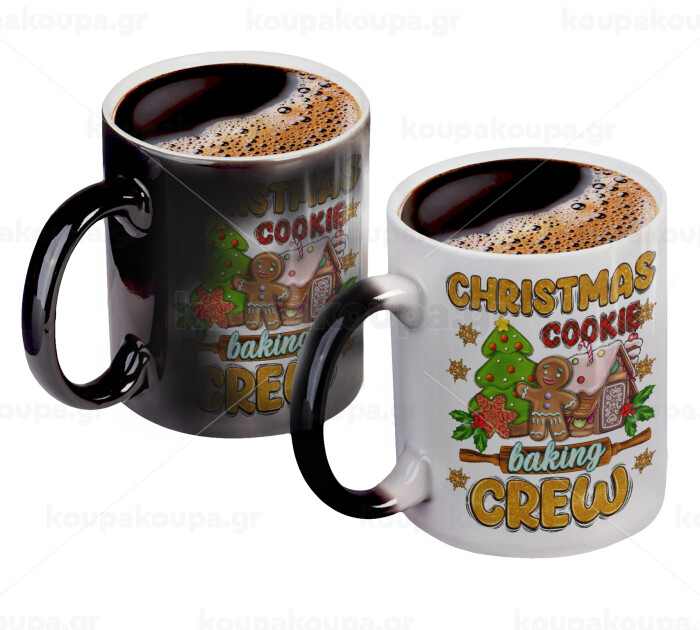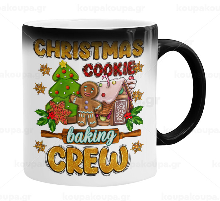 Christmas Cookie Baking Crew, Color changing magic Mug, ceramic, 330ml when adding hot liquid inside, the black colour desappears (1 pcs)