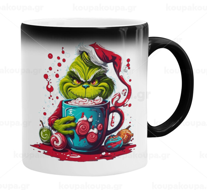 Giggling Grinchy Galore, Color changing magic Mug, ceramic, 330ml when adding hot liquid inside, the black colour desappears (1 pcs)
