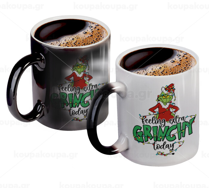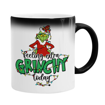 Grinch Feeling Extra Grinchy Today, Color changing magic Mug, ceramic, 330ml when adding hot liquid inside, the black colour desappears (1 pcs)
