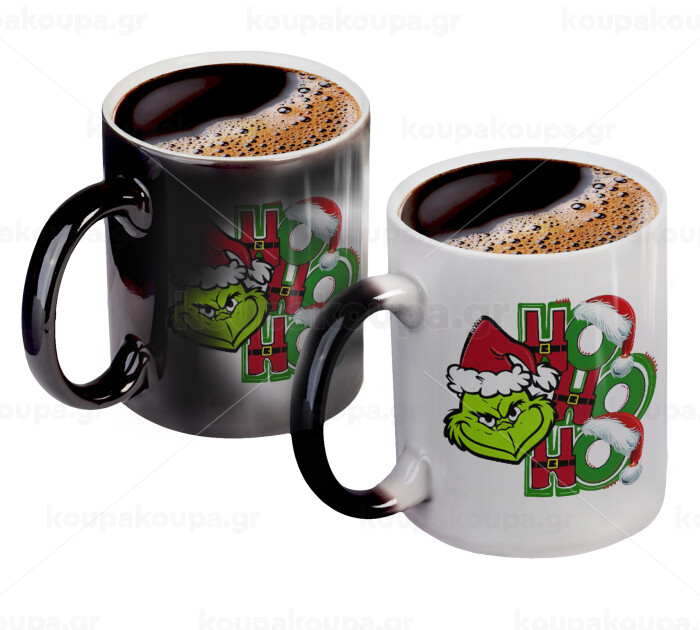 Grinch ho ho ho, Color changing magic Mug, ceramic, 330ml when adding hot liquid inside, the black colour desappears (1 pcs)