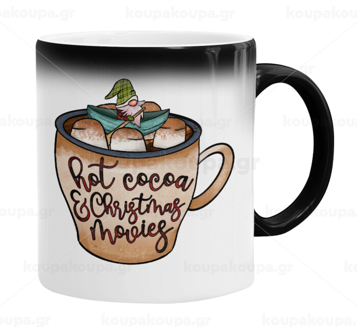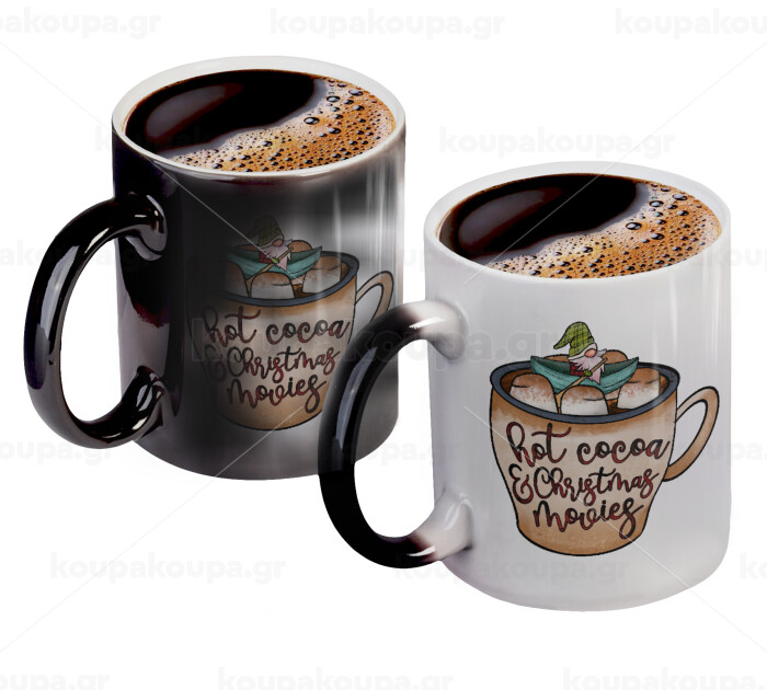 Hot Cocoa And Christmas Movies, Color changing magic Mug, ceramic, 330ml when adding hot liquid inside, the black colour desappears (1 pcs)