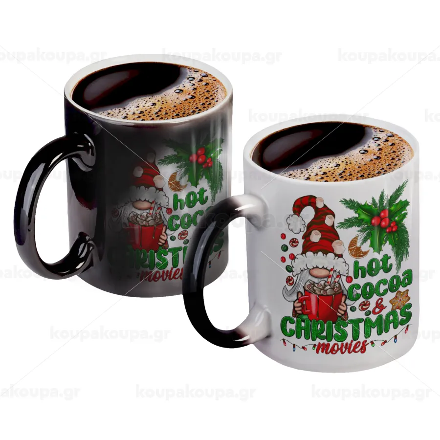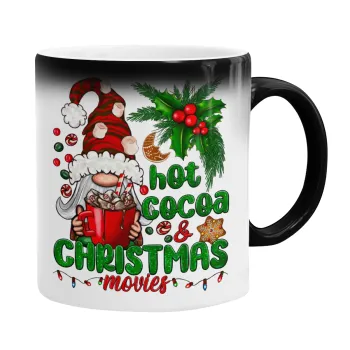 Hot cocoa and Christmas movies, Color changing magic Mug, ceramic, 330ml when adding hot liquid inside, the black colour desappears (1 pcs)