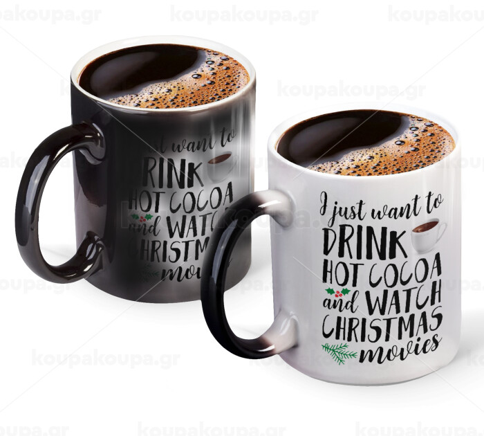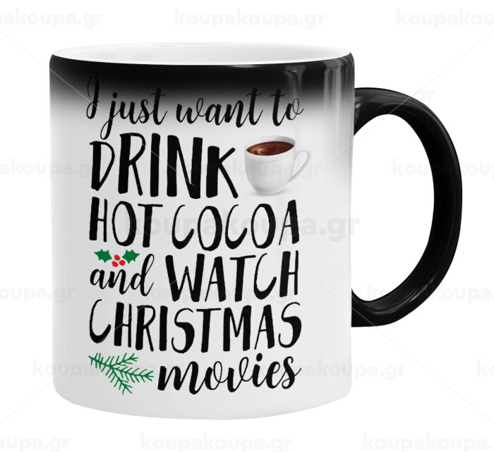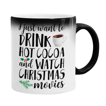 I just want to drink hot cocoa and watch christmas movies, Color changing magic Mug, ceramic, 330ml when adding hot liquid inside, the black colour desappears (1 pcs)
