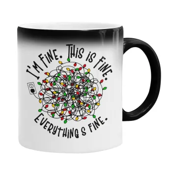 It's Fine I'm Fine Everything Is Fine, Color changing magic Mug, ceramic, 330ml when adding hot liquid inside, the black colour desappears (1 pcs)