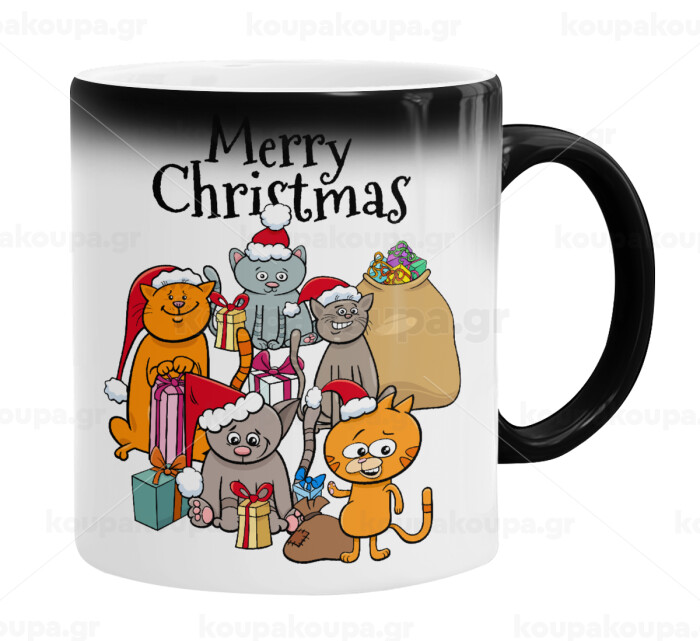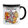 Merry Christmas Cats, Color changing magic Mug, ceramic, 330ml when adding hot liquid inside, the black colour desappears (1 pcs)
