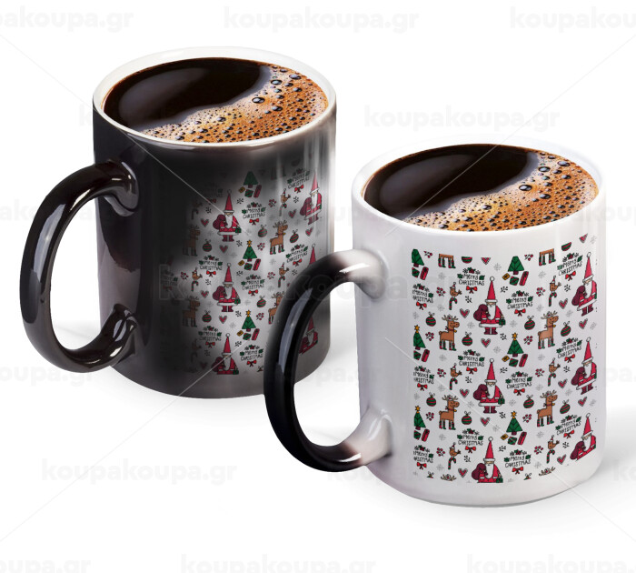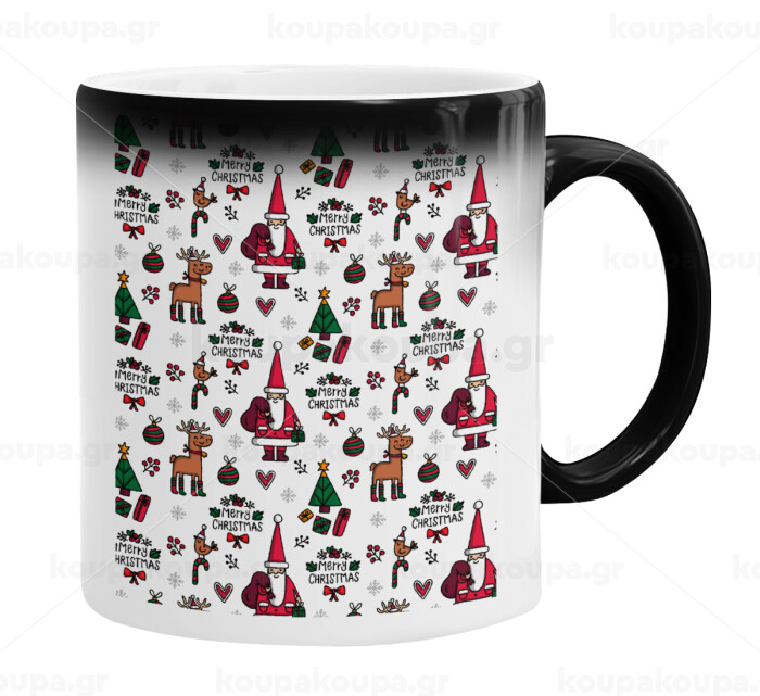 Santas, Deers & Trees, Color changing magic Mug, ceramic, 330ml when adding hot liquid inside, the black colour desappears (1 pcs)