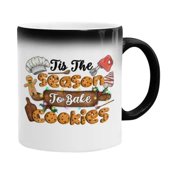 Tis The Season To Bake Cookies, Color changing magic Mug, ceramic, 330ml when adding hot liquid inside, the black colour desappears (1 pcs)
