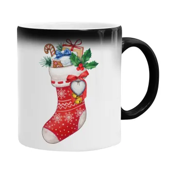Xmas boot, Color changing magic Mug, ceramic, 330ml when adding hot liquid inside, the black colour desappears (1 pcs)