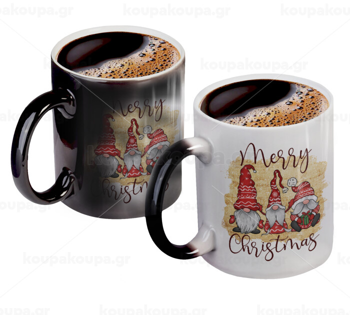 Xmas Elves, Color changing magic Mug, ceramic, 330ml when adding hot liquid inside, the black colour desappears (1 pcs)