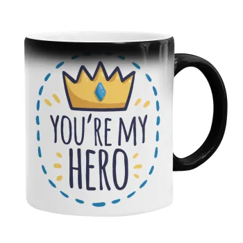 Dad, you are my hero!, Color changing magic Mug, ceramic, 330ml when adding hot liquid inside, the black colour desappears (1 pcs)