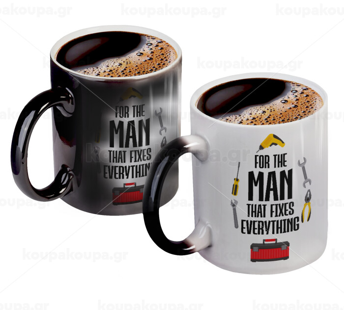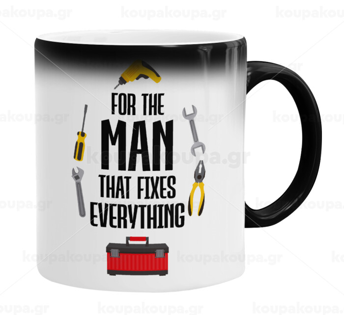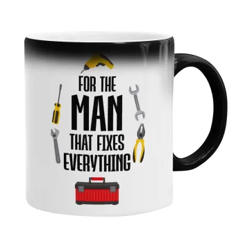 For the man that fixes everything!, Color changing magic Mug, ceramic, 330ml when adding hot liquid inside, the black colour desappears (1 pcs)