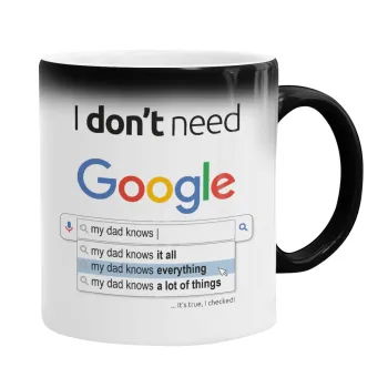 I don't need Google my dad..., Color changing magic Mug, ceramic, 330ml when adding hot liquid inside, the black colour desappears (1 pcs)