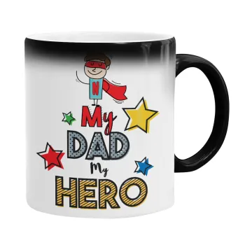 My Dad, my Hero!!!, Color changing magic Mug, ceramic, 330ml when adding hot liquid inside, the black colour desappears (1 pcs)