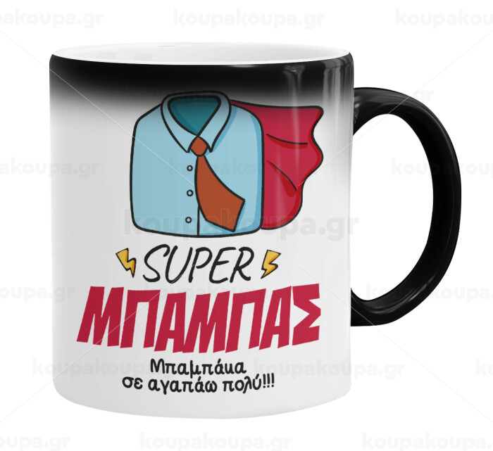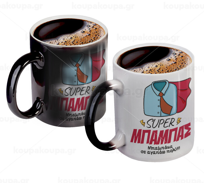 SUPER ΜΠΑΜΠΑΣ, Color changing magic Mug, ceramic, 330ml when adding hot liquid inside, the black colour desappears (1 pcs)