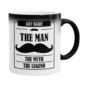 The man, the myth, Color changing magic Mug, ceramic, 330ml when adding hot liquid inside, the black colour desappears (1 pcs)