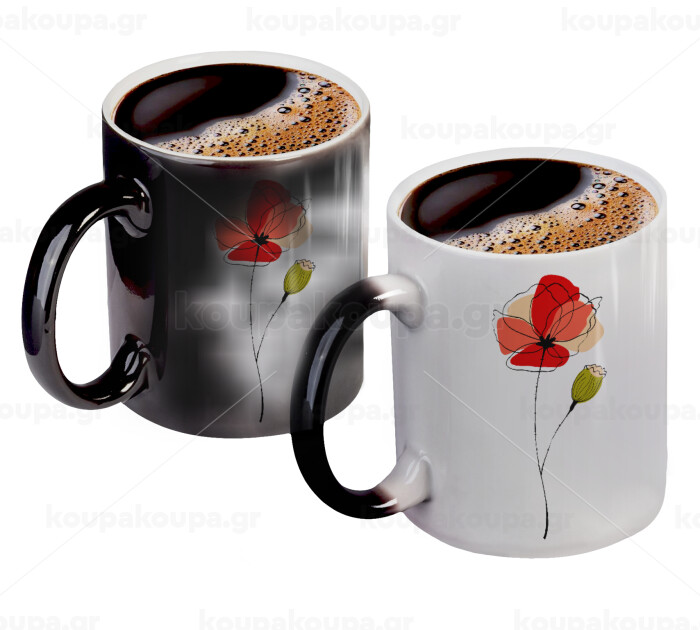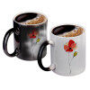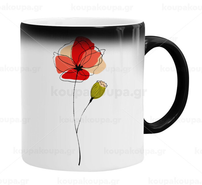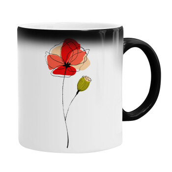 Red poppy flowers papaver, Color changing magic Mug, ceramic, 330ml when adding hot liquid inside, the black colour desappears (1 pcs)