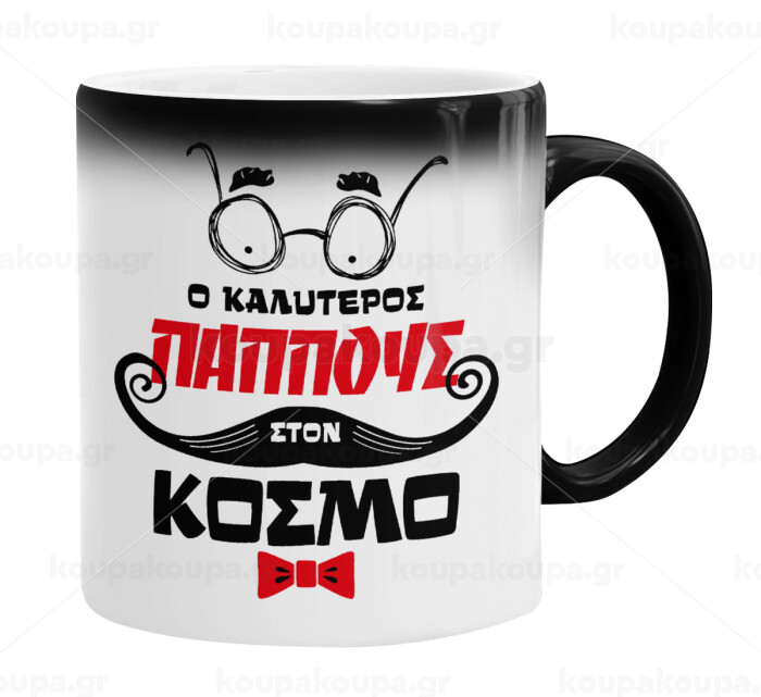 Ο καλύτερος παππούς του κόσμου!, Color changing magic Mug, ceramic, 330ml when adding hot liquid inside, the black colour desappears (1 pcs)