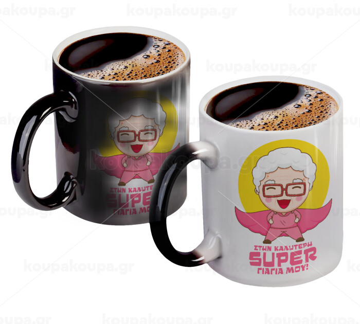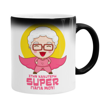 To my best Super Grandma!, Color changing magic Mug, ceramic, 330ml when adding hot liquid inside, the black colour desappears (1 pcs)