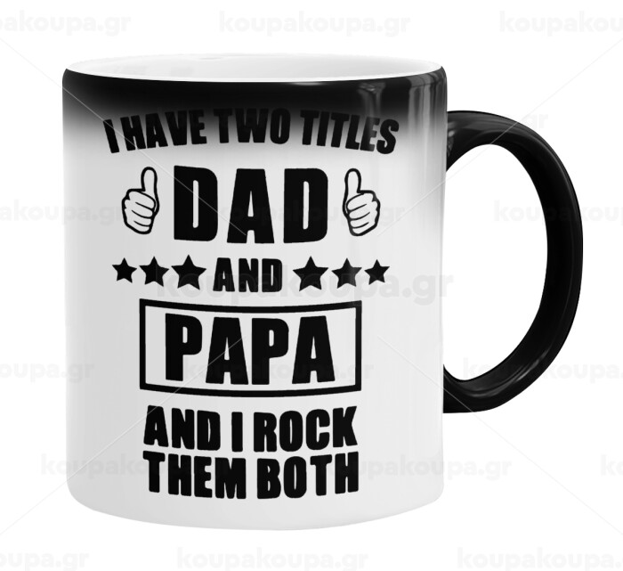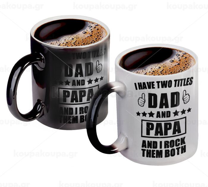 I have two title, DAD & PAPA, Color changing magic Mug, ceramic, 330ml when adding hot liquid inside, the black colour desappears (1 pcs)