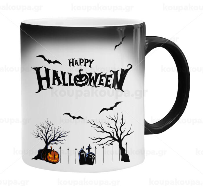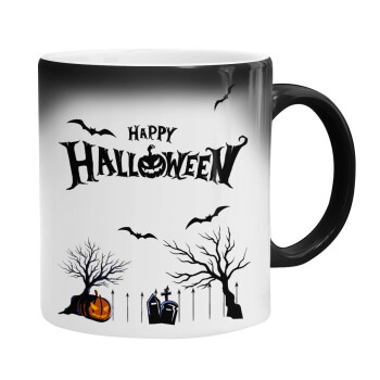 Happy Halloween cemetery, Color changing magic Mug, ceramic, 330ml when adding hot liquid inside, the black colour desappears (1 pcs)
