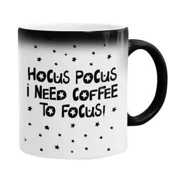 Hocus pocus i need coffee to focus - halloween, Color changing magic Mug, ceramic, 330ml when adding hot liquid inside, the black colour desappears (1 pcs)