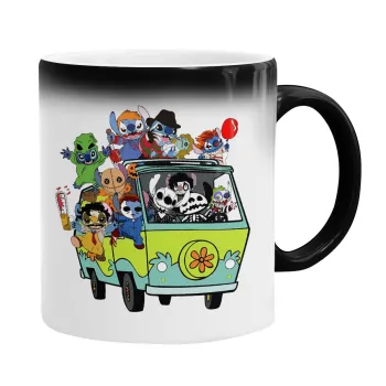 Stitch Halloween scooby car, Color changing magic Mug, ceramic, 330ml when adding hot liquid inside, the black colour desappears (1 pcs)