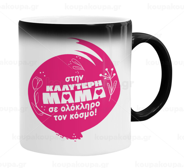 Στην καλύτερη μαμά του κόσμου!, Color changing magic Mug, ceramic, 330ml when adding hot liquid inside, the black colour desappears (1 pcs)