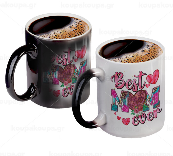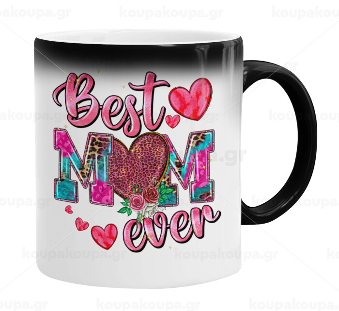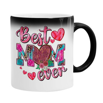 Best mom ever Mother's Day pink, Color changing magic Mug, ceramic, 330ml when adding hot liquid inside, the black colour desappears (1 pcs)