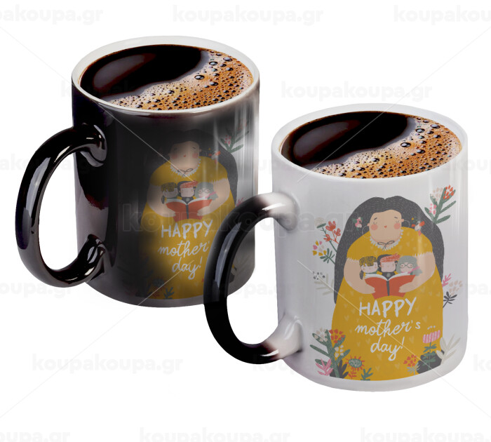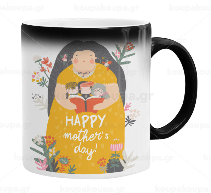 Cute mother reading book, happy mothers day, Color changing magic Mug, ceramic, 330ml when adding hot liquid inside, the black colour desappears (1 pcs)