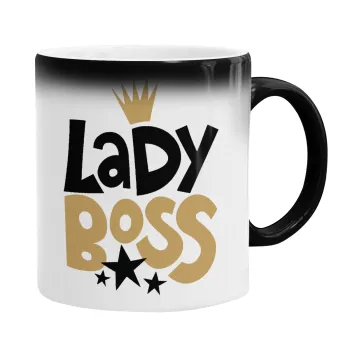 Lady Boss, Color changing magic Mug, ceramic, 330ml when adding hot liquid inside, the black colour desappears (1 pcs)