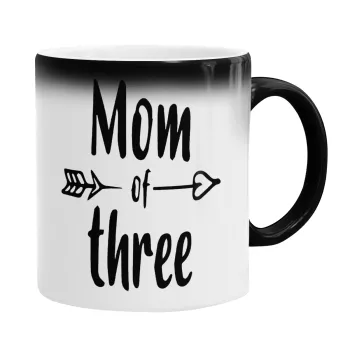 Mom of three, Color changing magic Mug, ceramic, 330ml when adding hot liquid inside, the black colour desappears (1 pcs)