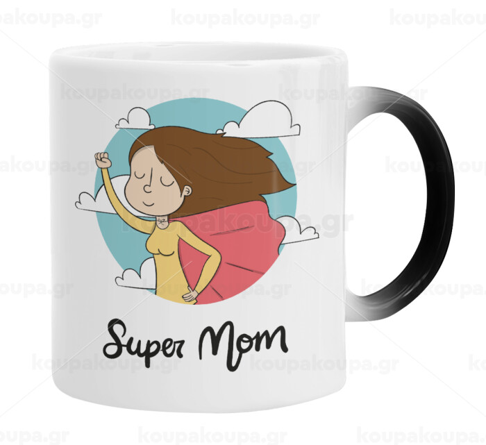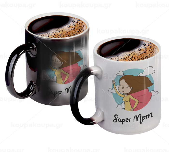 Super mom, Color changing magic Mug, ceramic, 330ml when adding hot liquid inside, the black colour desappears (1 pcs)
