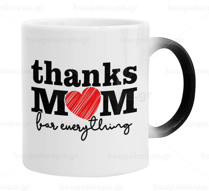 Thanks mom for everything, Color changing magic Mug, ceramic, 330ml when adding hot liquid inside, the black colour desappears (1 pcs)