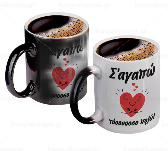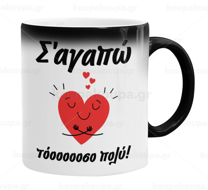 Σ΄αγαπώ τόοοοσο πολύ καρδιά, Color changing magic Mug, ceramic, 330ml when adding hot liquid inside, the black colour desappears (1 pcs)