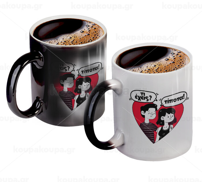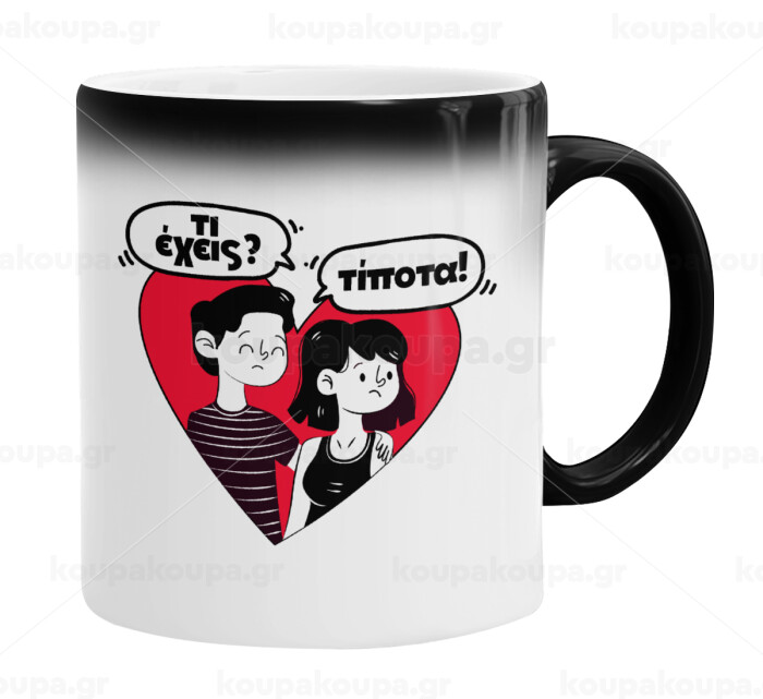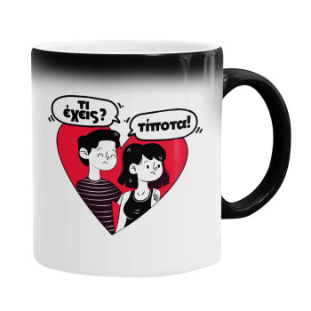 Τι έχεις? Τίποτα!, Color changing magic Mug, ceramic, 330ml when adding hot liquid inside, the black colour desappears (1 pcs)
