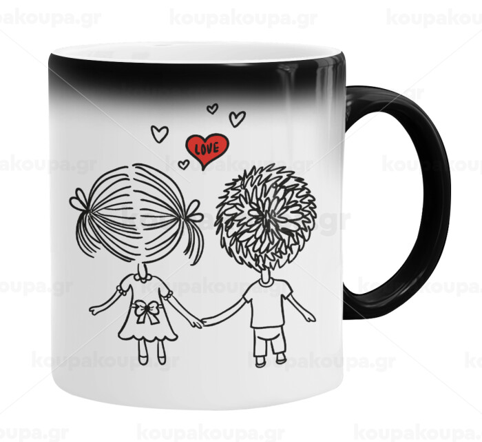 Hold my hand for ever, Color changing magic Mug, ceramic, 330ml when adding hot liquid inside, the black colour desappears (1 pcs)