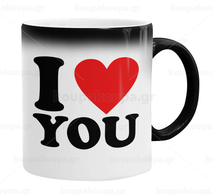 I LOVE YOU, Color changing magic Mug, ceramic, 330ml when adding hot liquid inside, the black colour desappears (1 pcs)